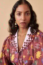 Estos pendientes están hechos en acetato de celulosa beige, verde menta y verde oscuro con una pieza en latón lacado con acabado mate, pulido y tratado con técnicas de joyería.